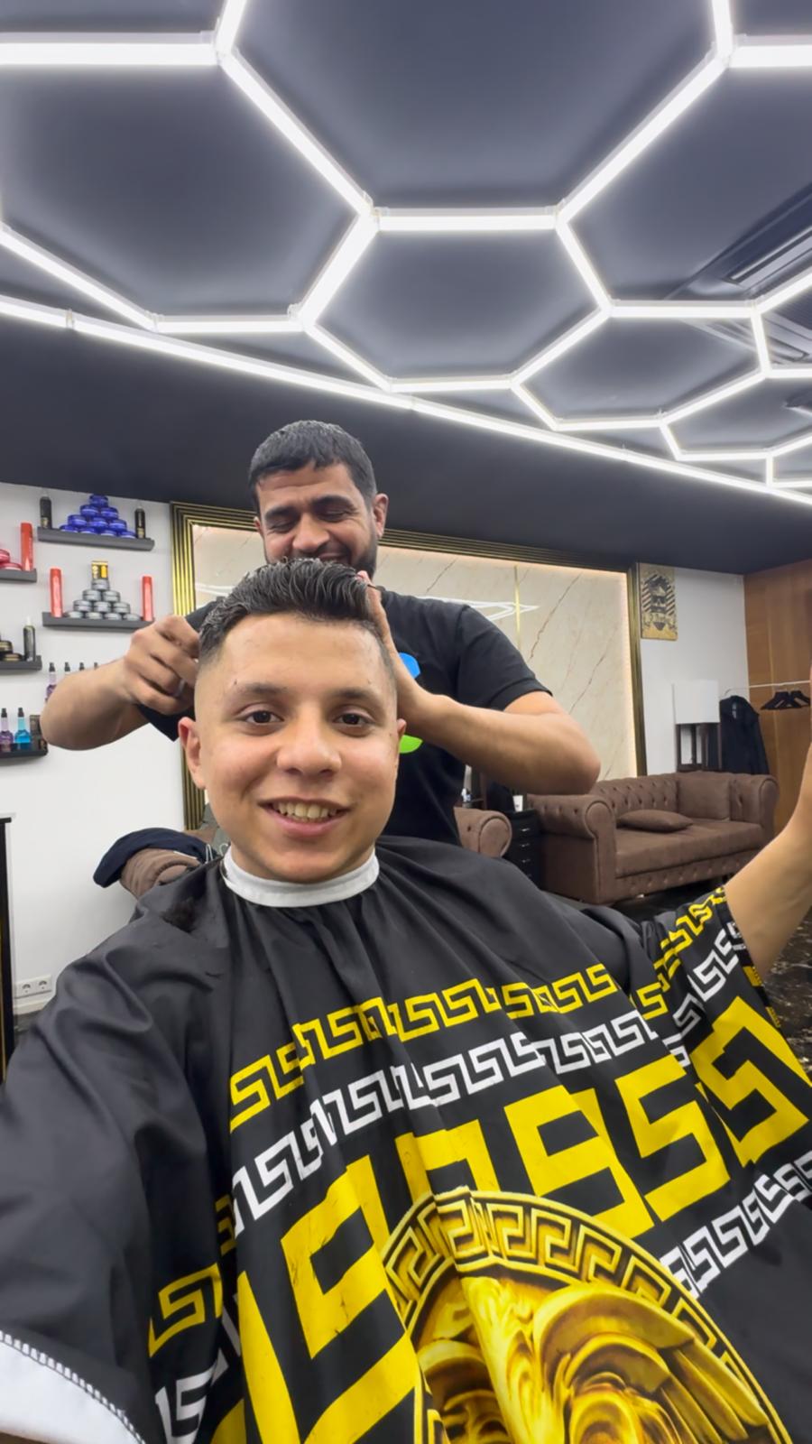Dubai Style Barber is a modern and stylish barbershop that blends classic grooming with contemporary flair. Upon entering, you’re greeted by a sleek, urban aesthetic with clean lines and a minimalist design. The space is characterized by a mix of industrial elements, such as exposed 3-D walls and chill esthetic , paired with comfortable, plush seating and warm lighting to create a relaxed yet upscale atmosphere.