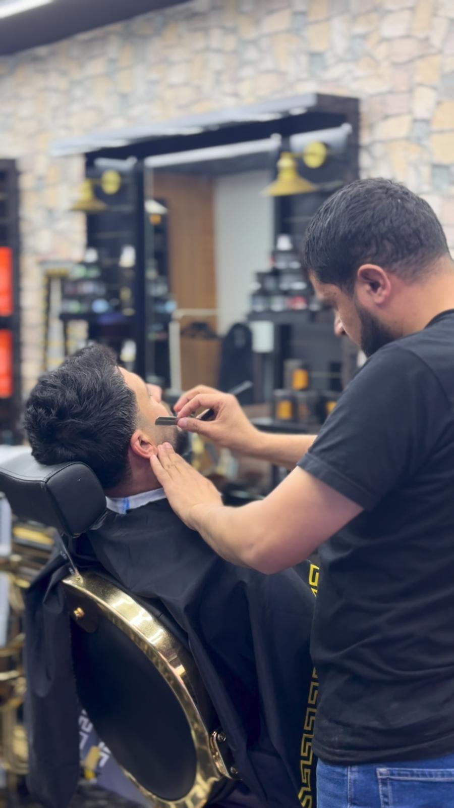The barbers at Dubai Style Barber are skilled professionals who offer a range of services from traditional haircuts and shaves to modern styles and beard grooming. Each station is equipped with high-quality tools and features a mirror that adds to the salon’s sophisticated vibe.
